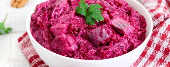 När det är kyligt ute och själen längtar efter något hemtrevligt, mysigt och lite nostalgiskt är det dags för en sallad med rödbetor. Men den här gången – utan traditionella lager, utan ”päls” i dess vanliga bemärkelse. Matbloggaren Olga Ryabenko erbjöd sin egen version av en bekant maträtt – sallad med rödbetor och sill, som kombinerar det bästa av vinägretten. Enkel, snabb, effektiv och mycket välsmakande.