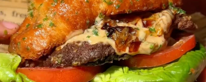 Hemligheten är enkel, en croissant istället för ett tungt bröd, en krämig blandning av majonnäs, karamelliserad lök och saltgurka istället för den vanliga såsen, och köttet är perfekt grillat, tunt och saftigt. Det är inte bara en hamburgare, det är en hamburgare för dem som älskar livet med smak. Och det detaljerade receptet för dess tillagning berättas på sapor-sidan.